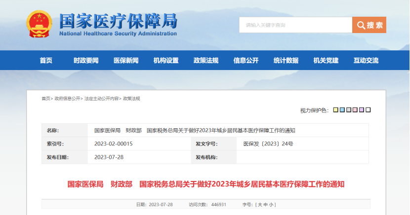 7月28日,國家醫(yī)保局發(fā)布《國家醫(yī)保局 財政部 國家稅務(wù)總局關(guān)于做好2023年城鄉(xiāng)居民基本醫(yī)療保障工作的通知》(以下簡稱《通知》)。