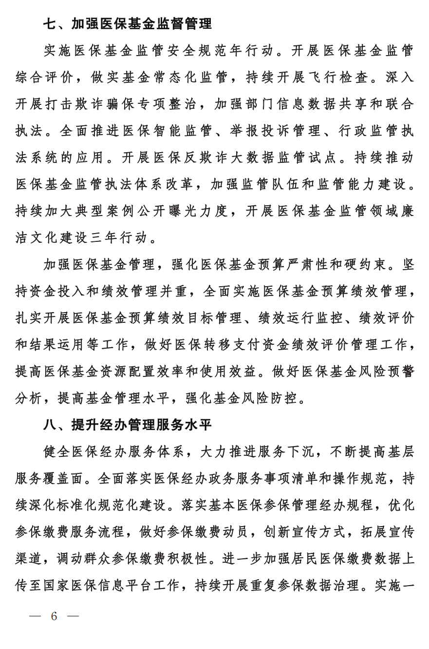 根據(jù)《通知》,加強(qiáng)醫(yī)保基金管理,強(qiáng)化醫(yī)?;痤A(yù)算嚴(yán)肅性和硬約束。堅持資金投入和績效管理并重,全面實施醫(yī)?;痤A(yù)算績效管理扎實開展醫(yī)?;痤A(yù)算績效目標(biāo)管理、績效運行監(jiān)控、績效評價和結(jié)果運用等工作,做好醫(yī)保轉(zhuǎn)移支付資金績效評價管理工作提高醫(yī)?;鹳Y源配置效率和使用效益。做好醫(yī)?;痫L(fēng)險預(yù)警分析,提高基金管理水平,強(qiáng)化基金風(fēng)險防控。