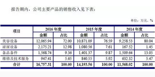 公司主要產(chǎn)品是美容設(shè)備和泌尿設(shè)備,合計占銷售額的85%左右,泌尿產(chǎn)品為公司近年來推出的新產(chǎn)品,報告期內(nèi)銷售收入增長較快,銷售金額及占比提升明顯,其余產(chǎn)品銷售占比相對略有下降。