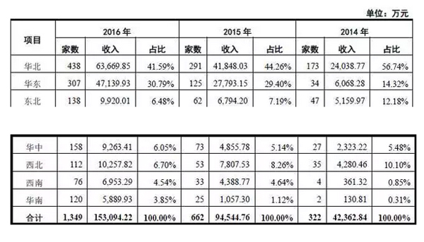 隨著公司授權(quán)分銷品牌和產(chǎn)品線的持續(xù)增加,與公司合作的下游經(jīng)銷商數(shù)量也快速上升,經(jīng)銷商數(shù)量由2014年的322家,增長到2016年的1,349家,呈快速增長趨勢,也表明公司在產(chǎn)業(yè)鏈上的地位不斷加強提升。本公司經(jīng)銷商按地域分布情況如下: