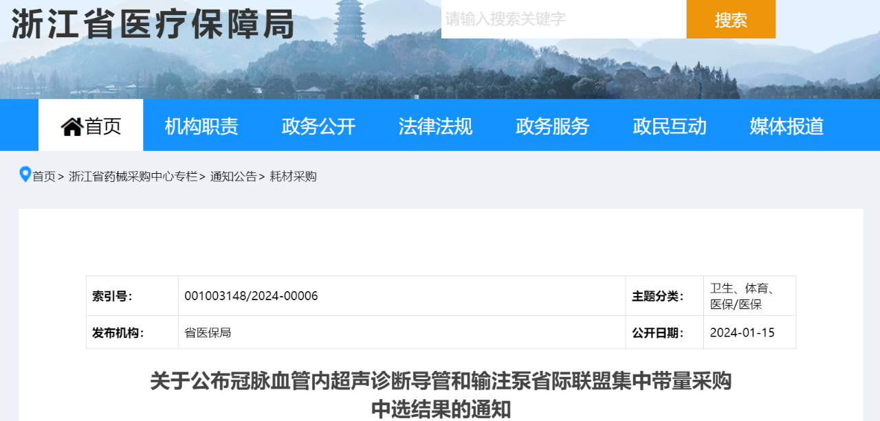 1月15日,浙江醫(yī)保局發(fā)布《關(guān)于公布冠脈血管內(nèi)超聲診斷導(dǎo)管和輸注泵省際聯(lián)盟集中帶量采購(gòu)中選結(jié)果的通知》。