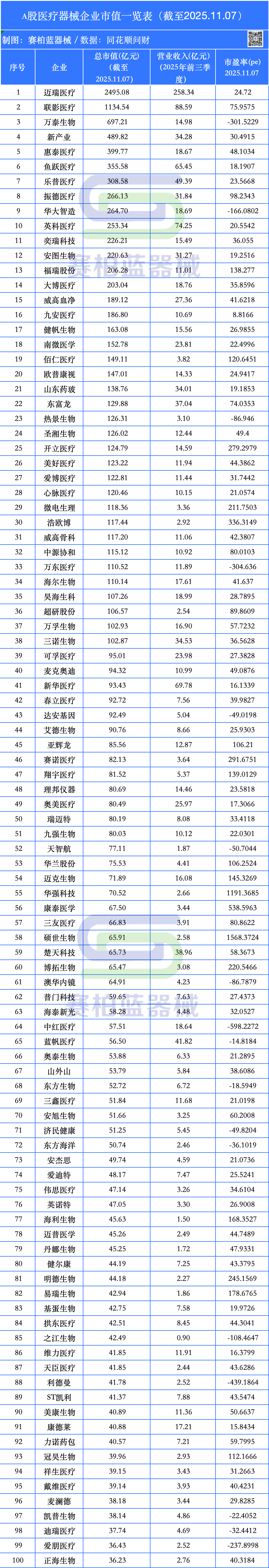 市值作為資本市場最核心的價值標尺,凝結(jié)了市場對企業(yè)價值的綜合判斷。根據(jù)醫(yī)療器械企業(yè)前三季度業(yè)績情況,部分細分行業(yè)已迎來拐點,相關(guān)企業(yè)的市值也在發(fā)生變動。