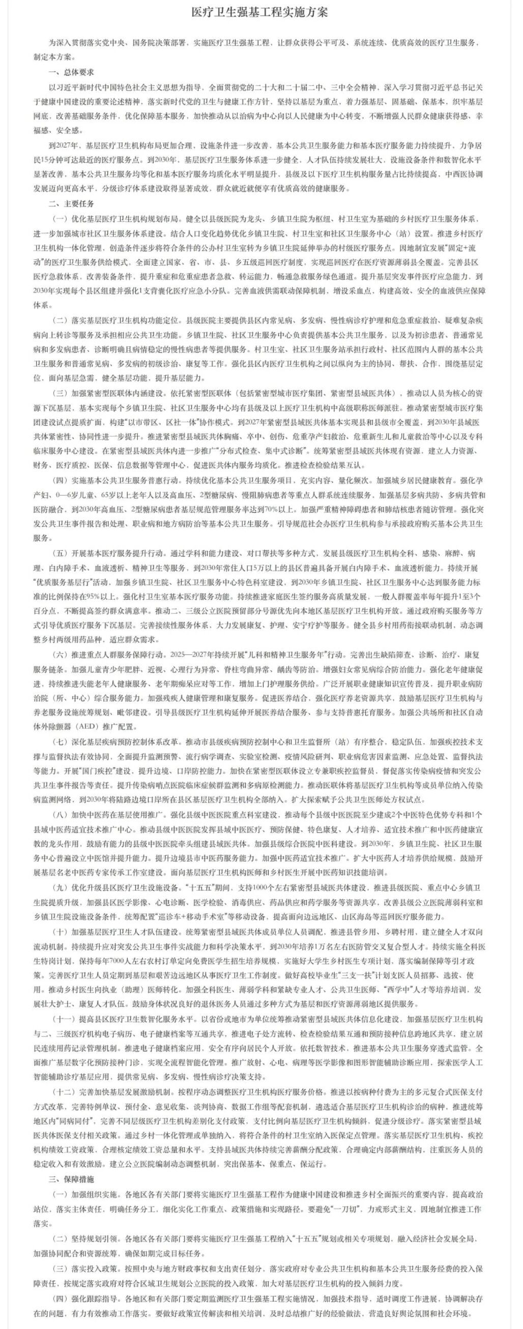 《醫(yī)療衛(wèi)生強(qiáng)基工程實(shí)施方案》正式發(fā)布